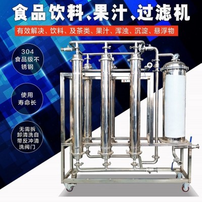 該機(jī)能有效解決,飲料,及茶類,果汁,渾濁,沉淀,懸浮物問題。過(guò)濾精度高,達(dá)到0.01微米,過(guò)濾后的飲料,清澈透明,無(wú)沉淀雜質(zhì)。區(qū)別于傳統(tǒng)的布袋式濾芯,需反復(fù)拆卸清洗問題,該機(jī)無(wú)需拆卸清洗,自帶反沖清洗閥門,及排污閥門,操作方便使用壽命長(zhǎng),可根據(jù)客戶飲料液體的不同情況,選用不同精度的濾芯,及不銹鋼濾芯,該機(jī)使用壽命長(zhǎng)達(dá)10年以上。