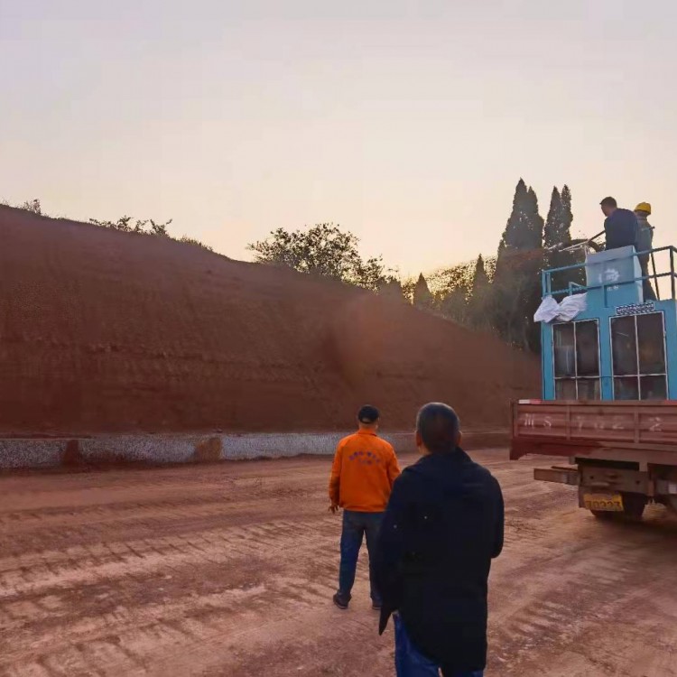 4.將種植土,紙漿或者木纖維,保水劑,粘合劑,草種攪拌均勻,噴灑到坡面上,厚度大概在0.5—25px左右。這樣草種與物料混合的比較均勻,滋潤(rùn)。有利于草種發(fā)芽。如果是陽(yáng)坡的話,氣溫高,可以加大種子的用量,同時(shí)為了保濕加大保水劑的用量。