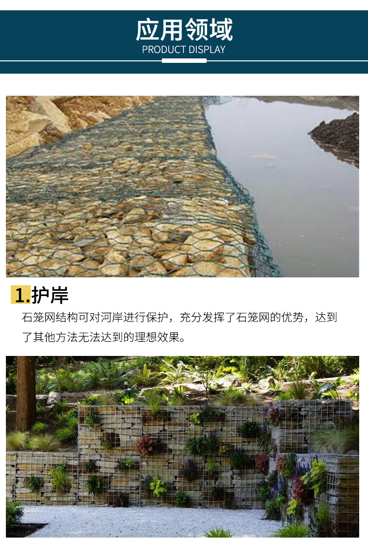 用途: 制成箱籠、網(wǎng)墊,用于江河、堤壩及海塘的防沖刷保護(hù),水庫(kù)、河流截流用網(wǎng)箱