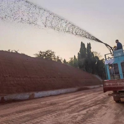 將處理好的種子與纖維、粘合劑、保水劑、復(fù)合肥、緩釋肥、微生物菌肥等經(jīng)過噴播機攪拌混勻成噴播泥漿,在噴播泵的作用下,均勻噴灑在工作作業(yè)面上。
