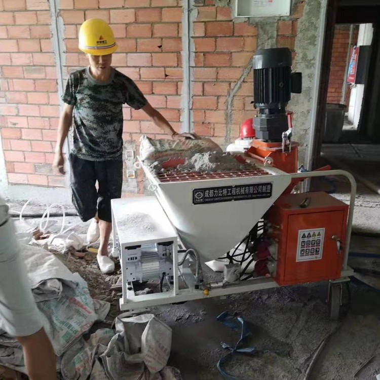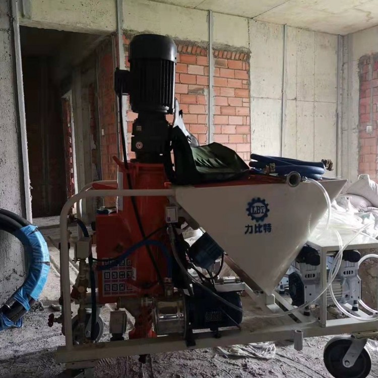 整臺噴涂機(jī)在施工時只需三個人,即一人輸送原料,一人控制噴噴料,另一個人做協(xié)助工作(如:協(xié)助移動皮管),而材料的加水,攪拌,輸送等過程都是由機(jī)器自動完成。與傳統(tǒng)的人工施工相比節(jié)省了人力、物力、財力和寶貴的時間,并且在施工質(zhì)量上也比傳統(tǒng)的人工施工更好,更有保證。工作原理,攪拌好的物料由配送攪拌機(jī)卸口(或人工拌料和上料),經(jīng)過震動篩網(wǎng)供給給噴涂機(jī)料斗中,由螺旋送料錕送給高壓室,再由高壓轉(zhuǎn)子、高壓定子旋轉(zhuǎn)形成高壓,把水泥砂漿經(jīng)過高壓輸送管送到噴頭里,由噴頭引入另一股高壓風(fēng),把物料吹散、加速噴射出去。