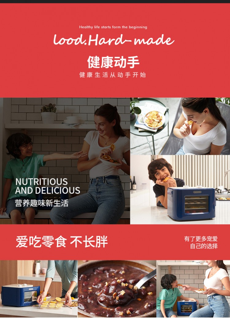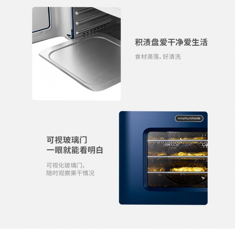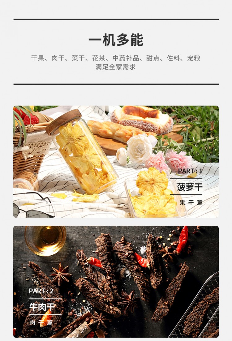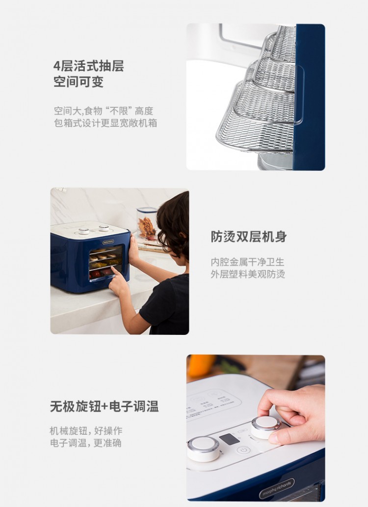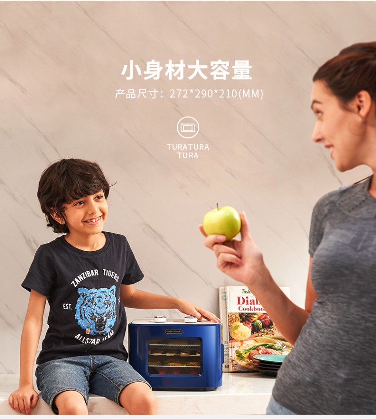 2.環(huán)繞風(fēng)道。360°沿弧循環(huán)風(fēng)道,高效風(fēng)干、熱力更均勻,鎖住食材鮮味。
