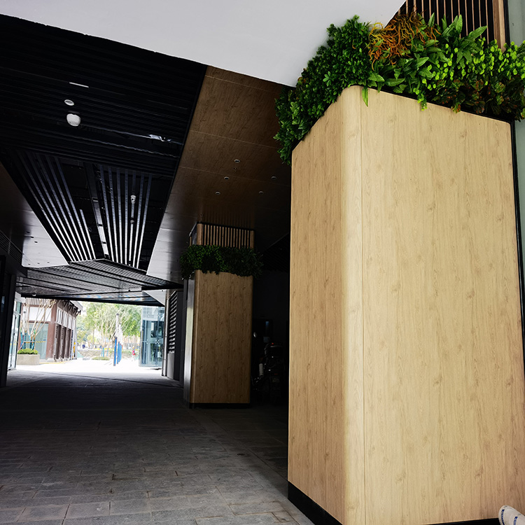 6、安裝施工方便快捷。鋁板在工廠成型,施工現(xiàn)場不需裁切,固定在骨架上即可。