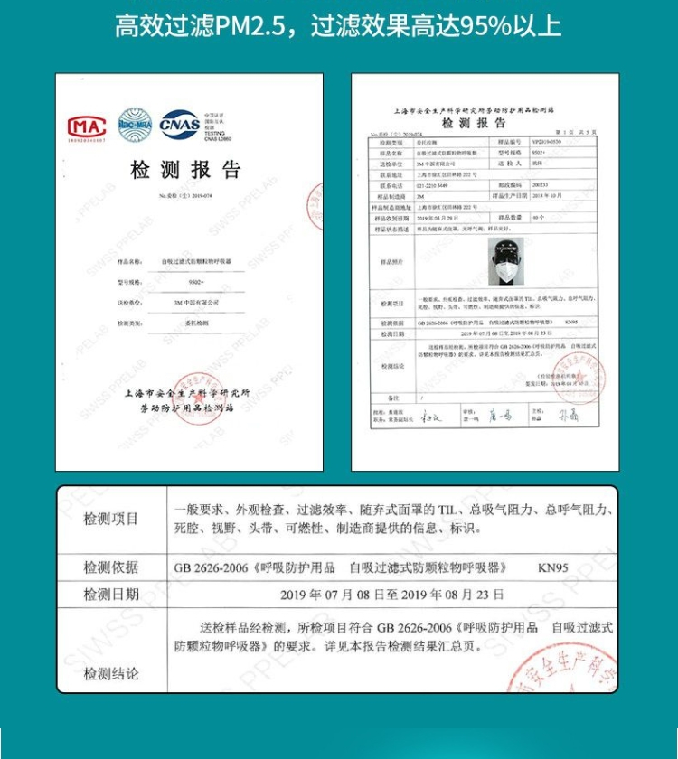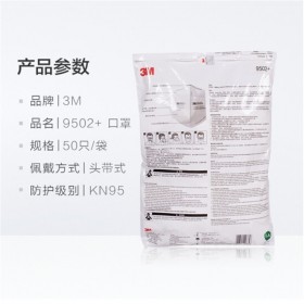 3M口罩 KN95系列 防塵防霧霾防護(hù)口罩9502+ 環(huán)保裝頭戴式50只一袋
