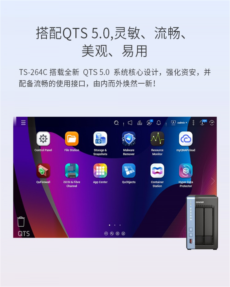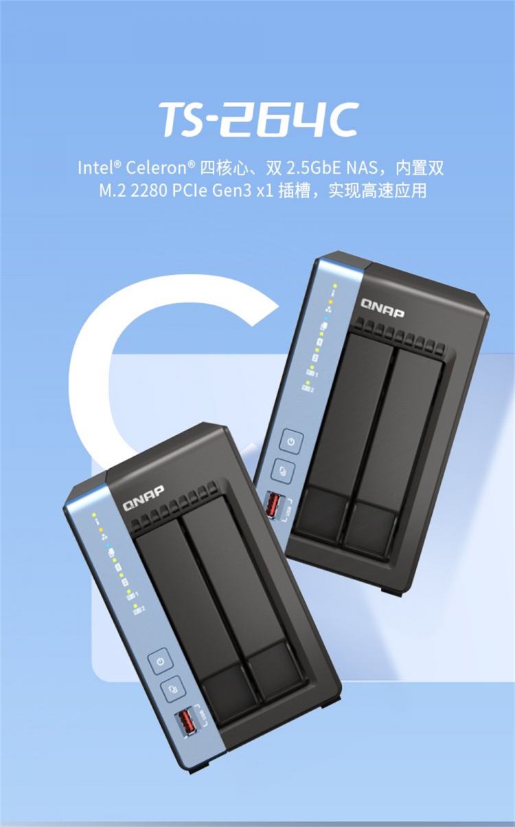 威聯(lián)通QNAPTS-264C 2盤位nas網(wǎng)絡(luò)存儲服務(wù)器四核處理器2.5G網(wǎng)口雙m2插槽私有云4G內(nèi)存