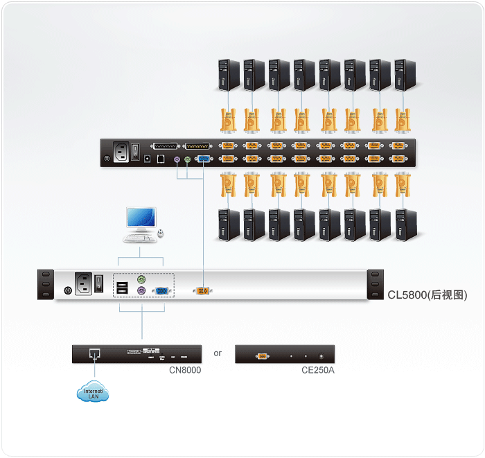 兼容于有ATEN KVM多電腦切換器與市面上多數(shù)的KVM多電腦切換器
