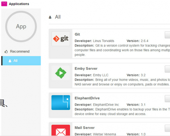 TOS應(yīng)用中心免費(fèi)提供幾十個(gè)應(yīng)用程序,涵蓋的種類(lèi)有工具、服務(wù)、數(shù)據(jù)庫(kù)、多媒體等,您可根據(jù)需要選擇安裝。