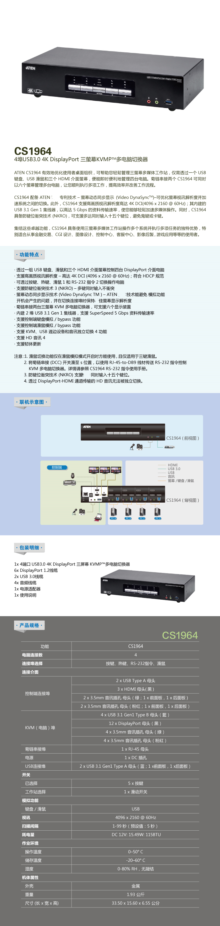 支持KVM、USB 外圍設(shè)備和音頻切換4 功能