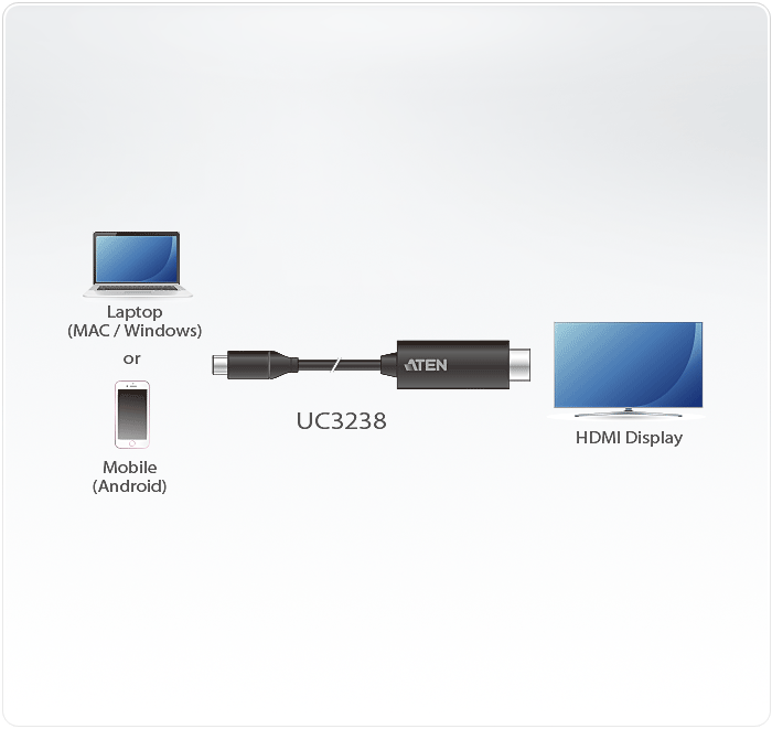 此產(chǎn)品支持HDMI 2.0,分辨率可達4K (3840 x 2160 @ 60 Hz)。使用者可以將高分辨率影片和音頻從計算機或手機傳輸至高畫質(zhì)電視,用于視頻串流或游戲。 此外,您可通過此纜線將USB-C 筆記本電腦外接HDMI 顯示器,作為鏡像或延伸屏幕。