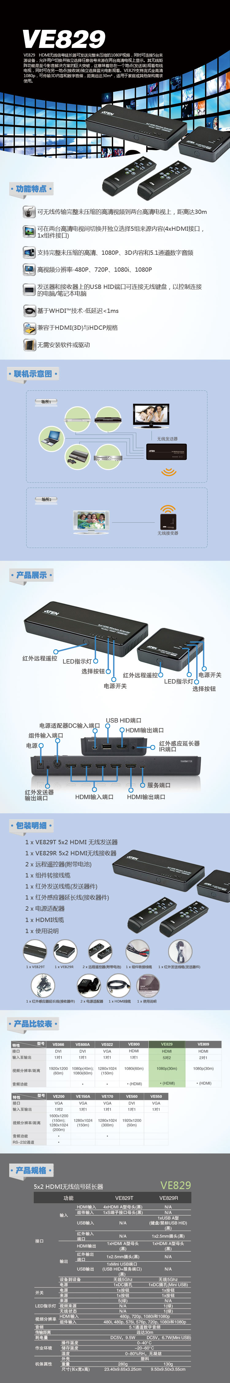 ATEN宏正 四川總代理 VE829 5x2 HDMI無線信號延長器