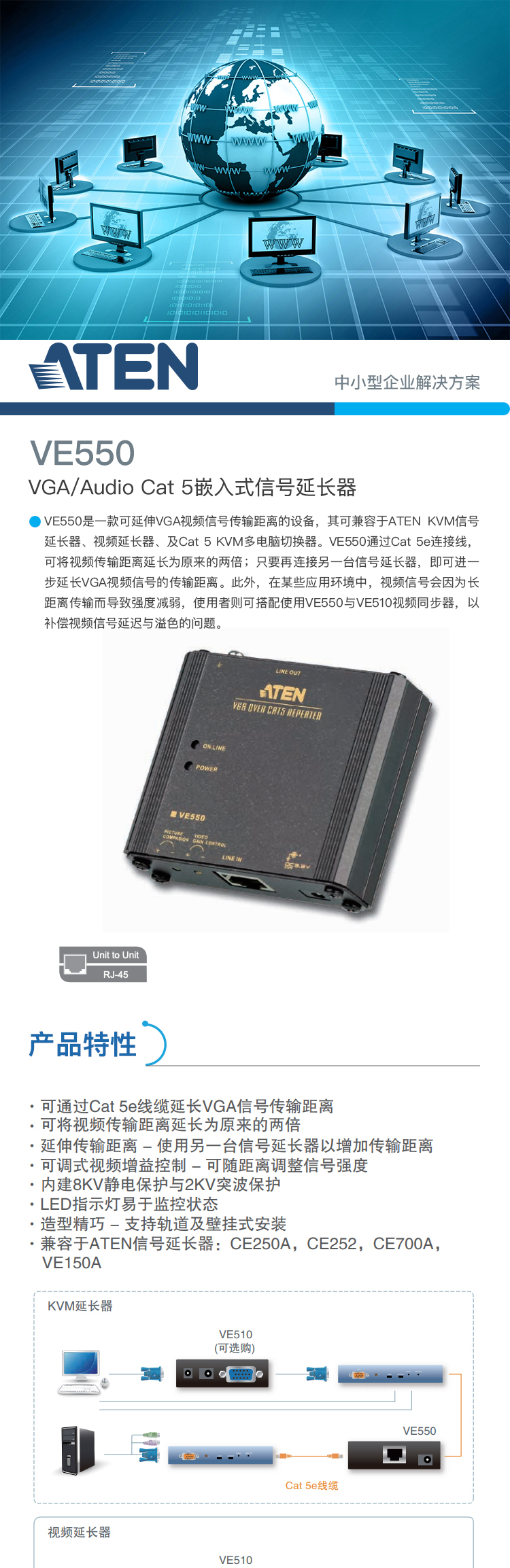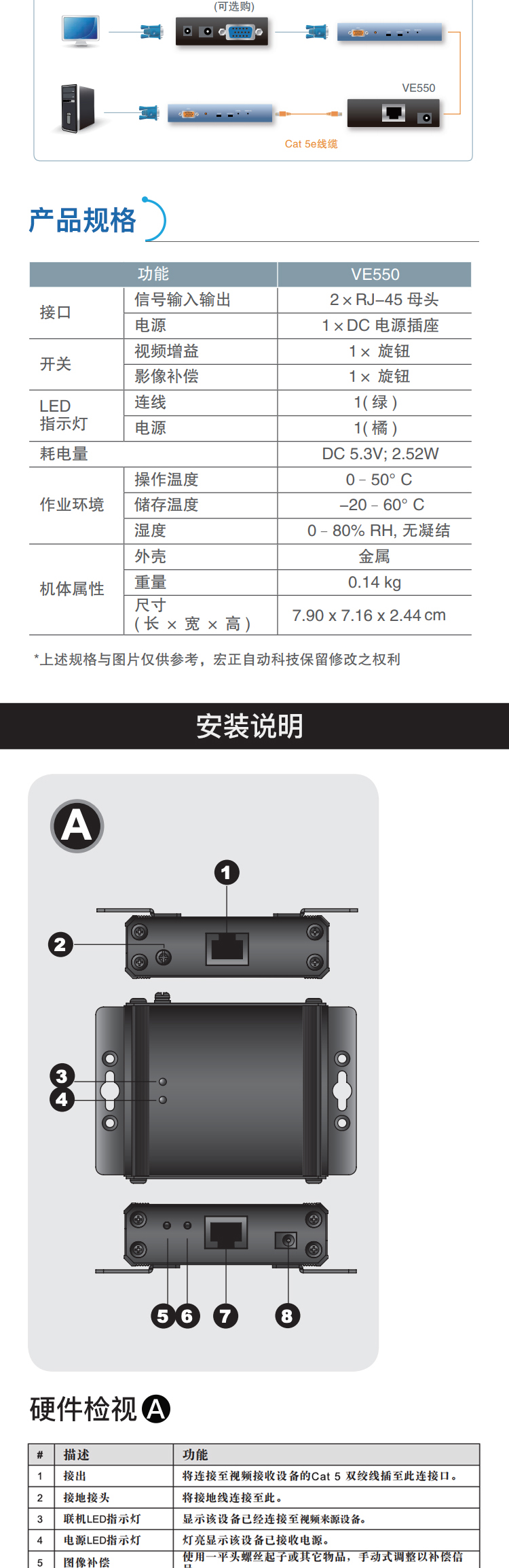兼容于ATEN信號(hào)延長器: CE250A, CE252, CE700A, VE150A