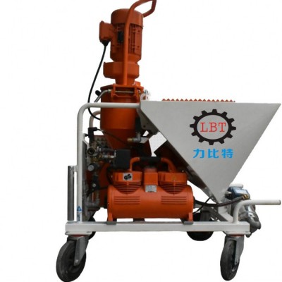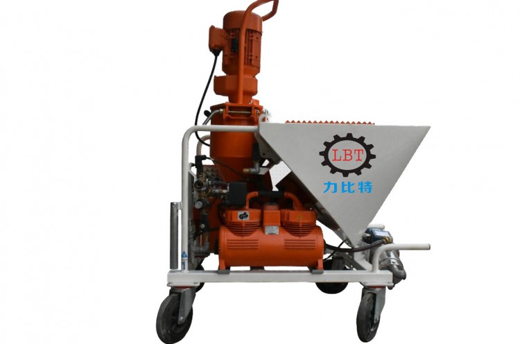整臺噴涂機(jī)在施工時(shí)只需三個(gè)人,即一人輸送原料,一人控制噴噴料,另一個(gè)人做協(xié)助工作(如:協(xié)助移動(dòng)皮管),而材料的加水,攪拌,輸送等過程都是由機(jī)器自動(dòng)完成。與傳統(tǒng)的人工施工相比節(jié)省了人力、物力、財(cái)力和寶貴的時(shí)間,并且在施工質(zhì)量上也比傳統(tǒng)的人工施工更好,更有保證。工作原理,攪拌好的物料由配送攪拌機(jī)卸口(或人工拌料和上料),經(jīng)過震動(dòng)篩網(wǎng)供給給噴涂機(jī)料斗中,由螺旋送料錕送給高壓室,再由高壓轉(zhuǎn)子、高壓定子旋轉(zhuǎn)形成高壓,把水泥砂漿經(jīng)過高壓輸送管送到噴頭里,由噴頭引入另一股高壓風(fēng),把物料吹散、加速噴射出去。
