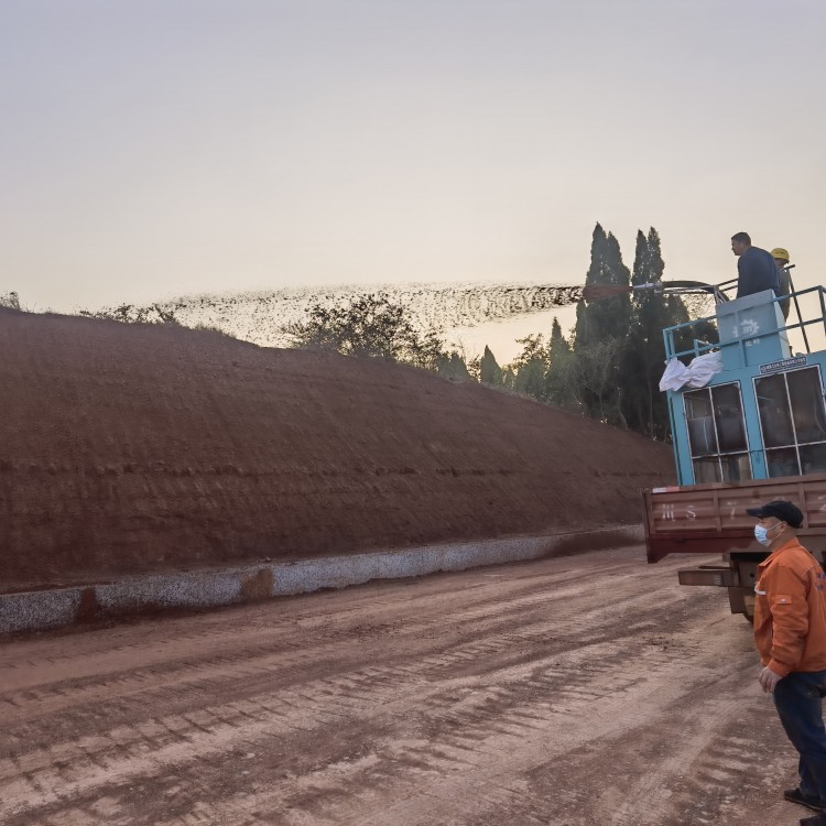 4.將種植土,紙漿或者木纖維,保水劑,粘合劑,草種攪拌均勻,噴灑到坡面上,厚度大概在0.5—25px左右。這樣草種與物料混合的比較均勻,滋潤(rùn)。有利于草種發(fā)芽。如果是陽(yáng)坡的話,氣溫高,可以加大種子的用量,同時(shí)為了保濕加大保水劑的用量。