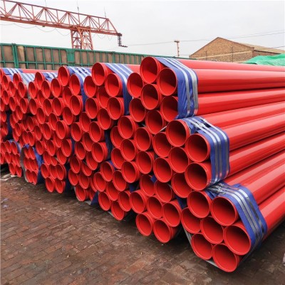 錦睿管業(yè)內(nèi)外環(huán)氧粉末涂塑鋼管 DN100溝槽紅色涂塑復(fù)合管
