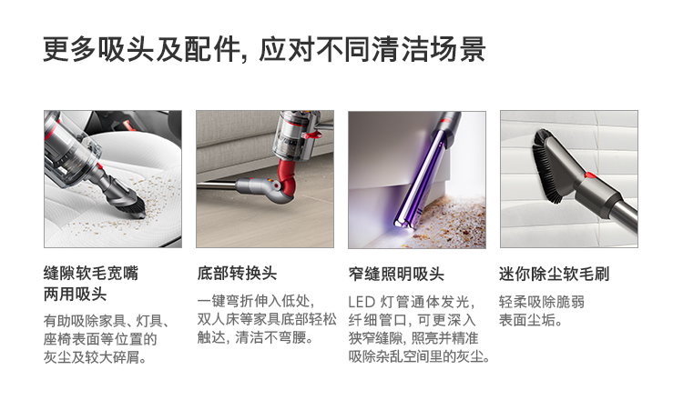 激光纖巧軟絨滾筒吸頭*1,防纏繞螺旋形毛發(fā)吸頭*1,縫隙軟毛(寬嘴)兩