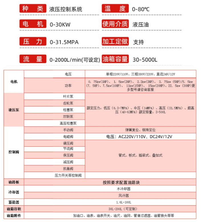 四川濠樂溢液壓機電設(shè)備有限公司主要銷售液壓動力單元,液壓泵站,液壓缸,液壓油泵電機、潤滑油等。廣泛用于港口、電力、冶金、工礦企業(yè)的貨物裝卸、堆物及工程船舶的挖泥、挖礁、過駁等。產(chǎn)品設(shè)計新穎,工藝先進,具有多用途、效率高的特點。