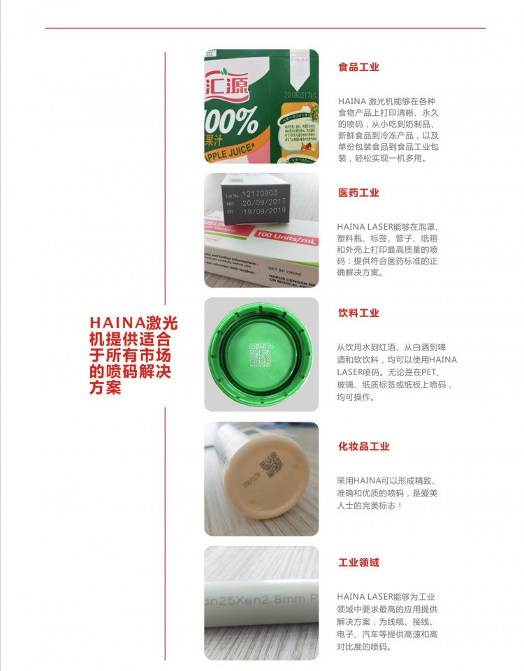 適用行業(yè): 廣泛應(yīng)用于食品、藥品、日化、標(biāo)簽噴印、管材、包裝印刷等行業(yè)