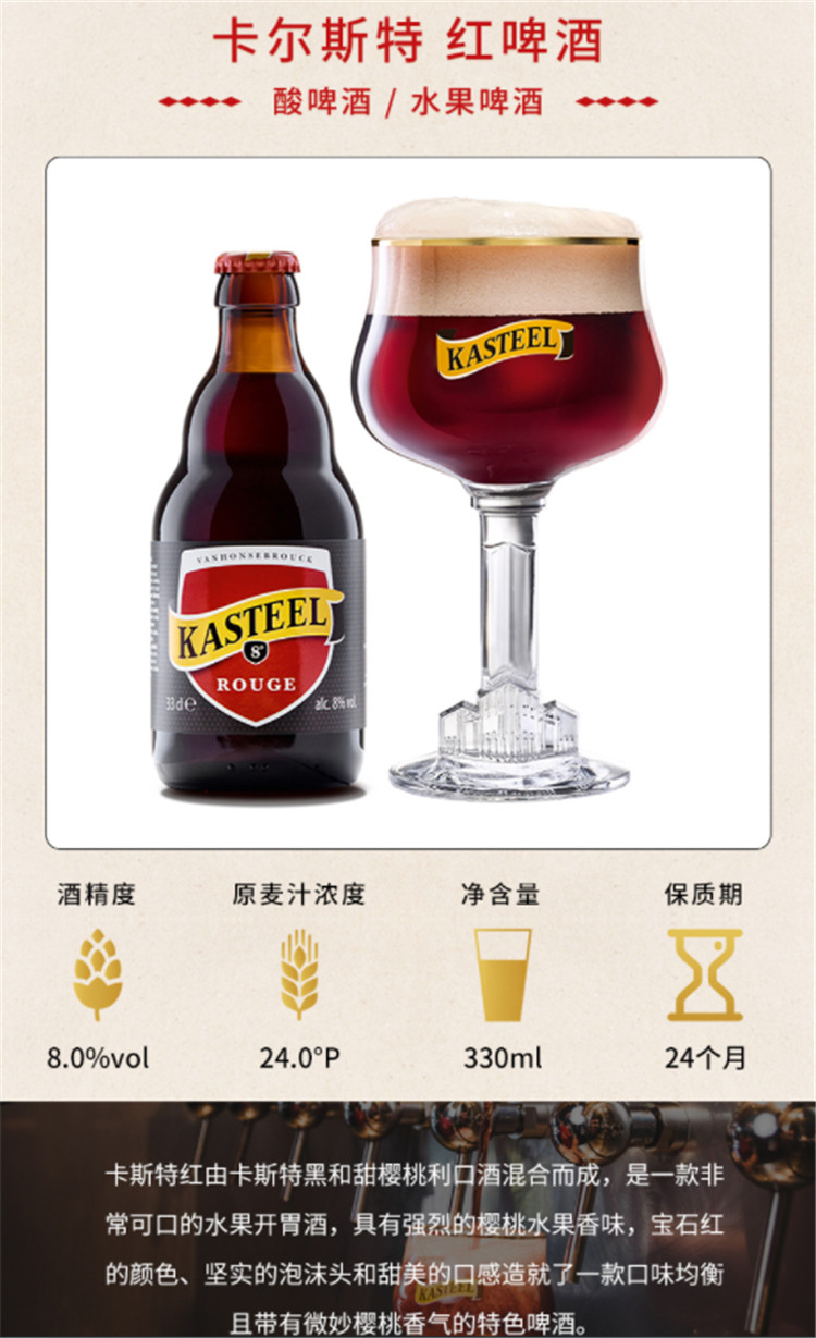 卡斯特紅啤 比利時(shí)進(jìn)口精釀啤酒整箱330ml 紅櫻桃 24瓶裝