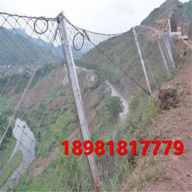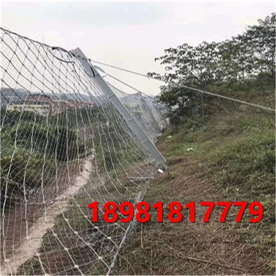 被動(dòng)防護(hù)是由鋼絲繩網(wǎng)、環(huán)形網(wǎng)、(需攔截小塊落石時(shí)附加一層鐵絲格柵)、固定系統(tǒng)(錨桿、拉錨繩、基座和支撐繩)減壓環(huán)和鋼柱四個(gè)主要部分構(gòu)成。鋼柱和鋼絲繩網(wǎng)連接組合構(gòu)成一個(gè)整體,對(duì)所防護(hù)的區(qū)域形成面防護(hù),從而阻止崩塌巖石土體的下墜,起到邊坡防護(hù)作用。