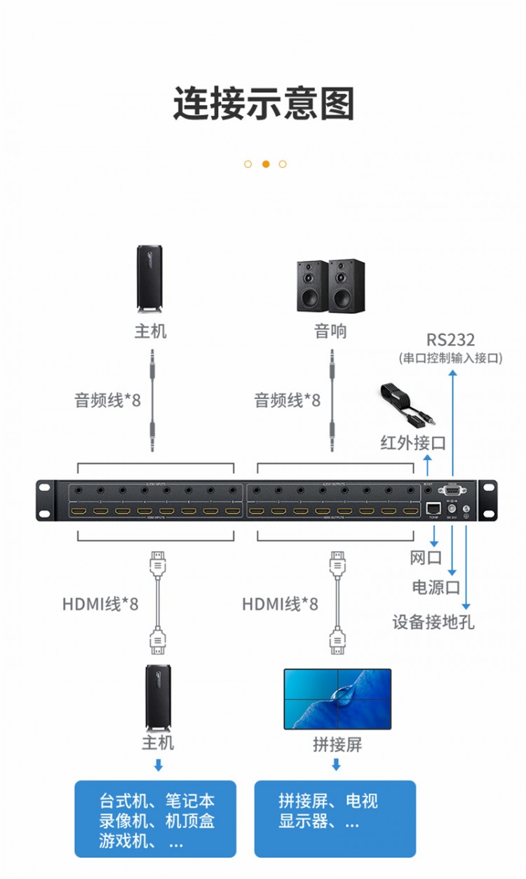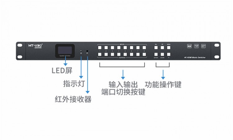 邁拓維矩 HDMI 視頻矩陣 8進8出 4K 高清音視頻無縫切換多屏寶拼接器 MT-HD88WF