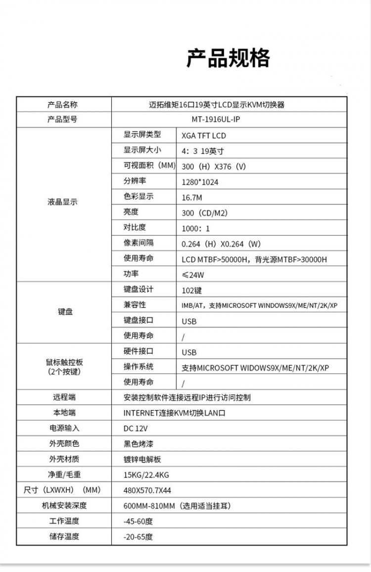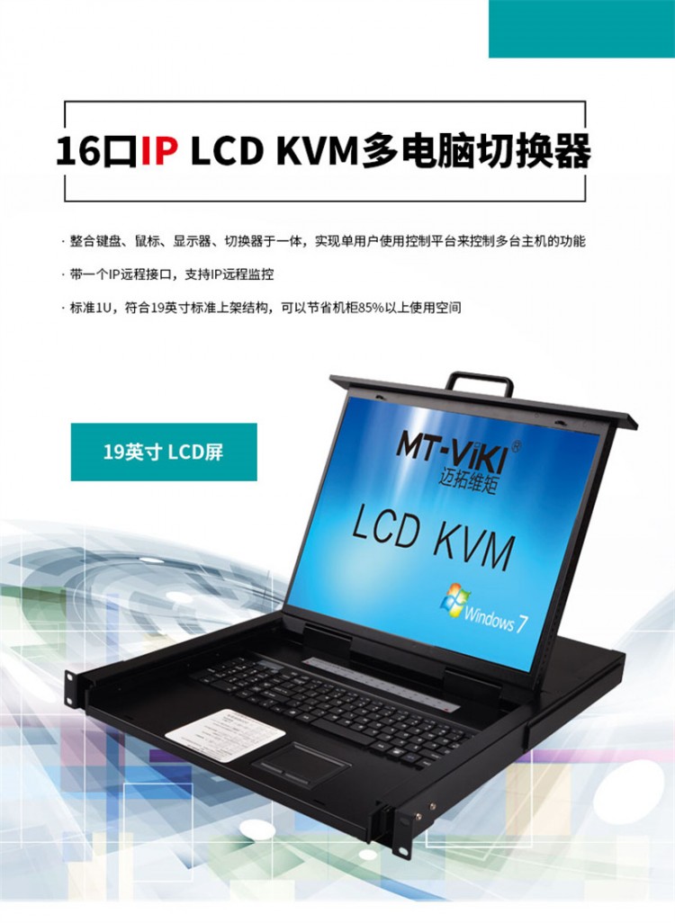 邁拓維矩 (MT-viki) MT-1916UL-IP 16口1出 LCD遠(yuǎn)程IP KVM切換器 電腦共享器鼠標(biāo)鍵盤(pán)四合一