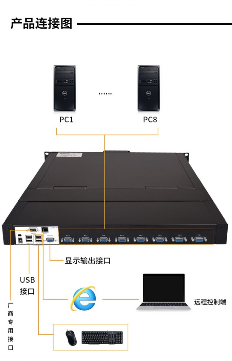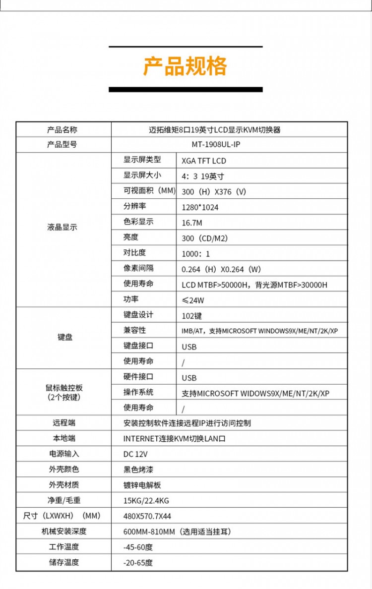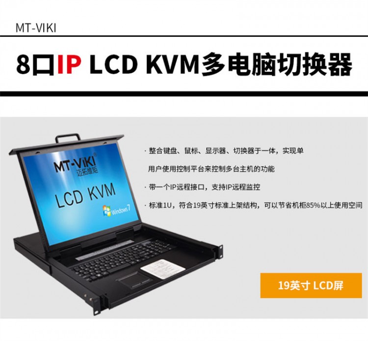 邁拓維矩 (MT-viki) MT-1908UL-IP 8進1出 19寸LCD屏 遠程IP KVM切換器 USB自動vga機架式