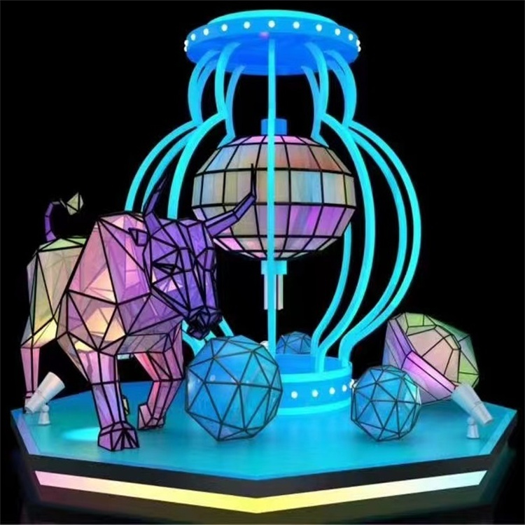 一、底盤材料,用來支撐花燈各部件的底盤,中型花燈底座尺寸一般為10米長3米寬,具體因燈組而異