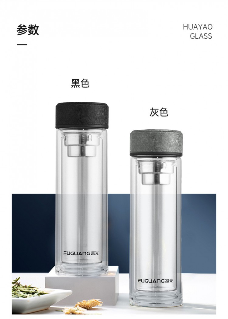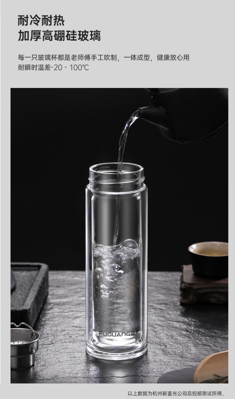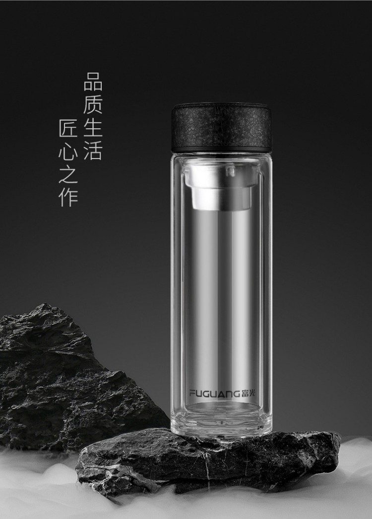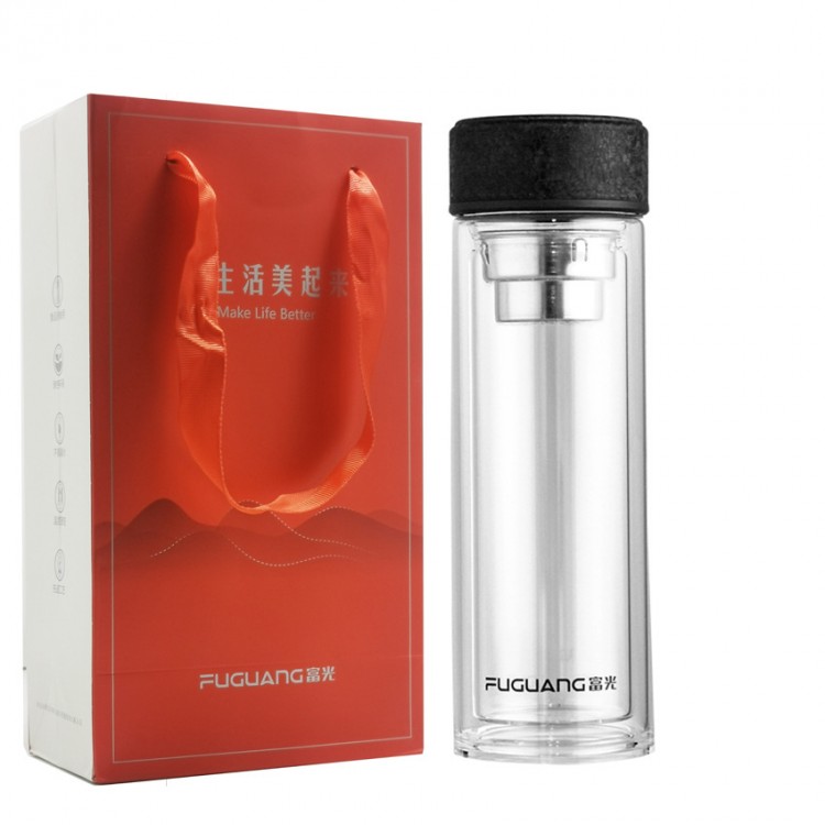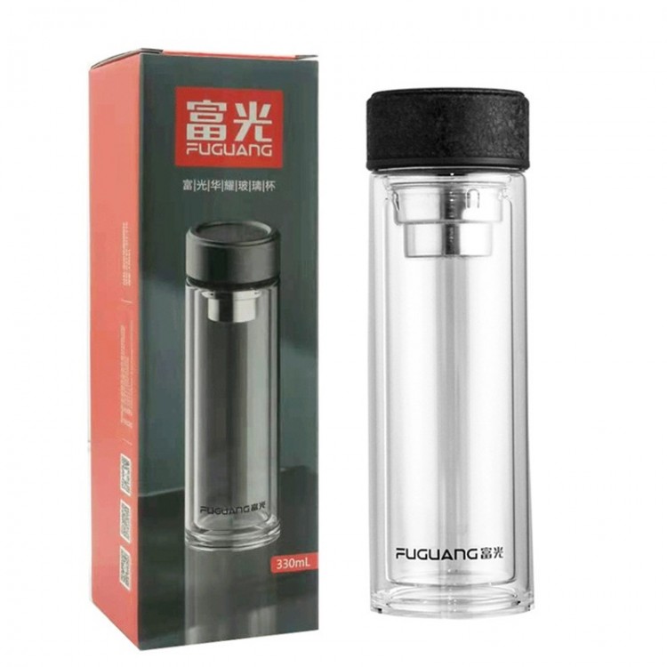 富光玻璃杯(黑色)G2139-SH-330華耀杯 雙層加厚玻璃杯印logo 高硼硅玻璃杯批發(fā)代理