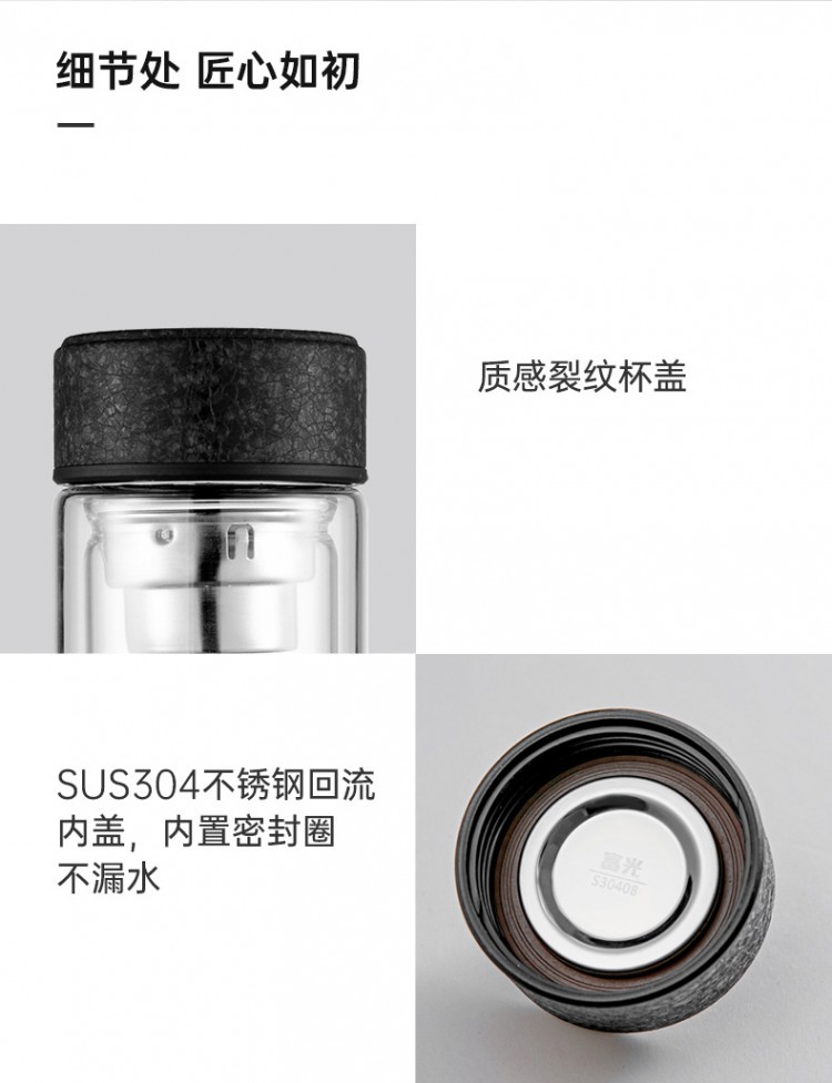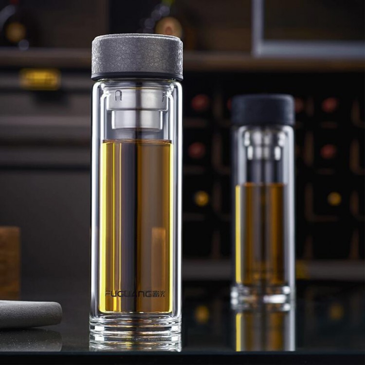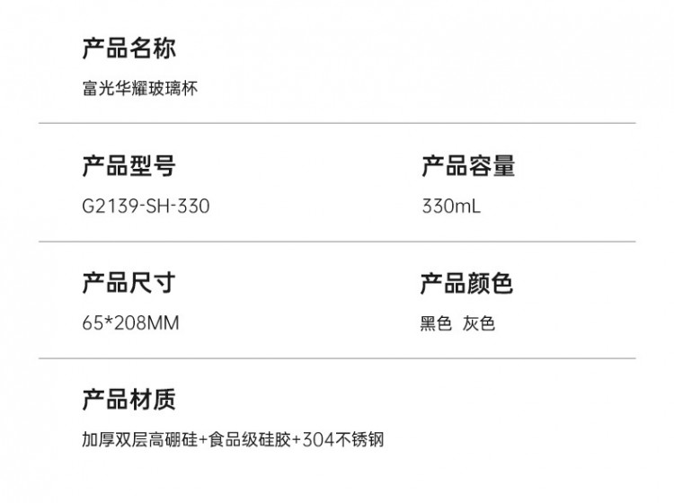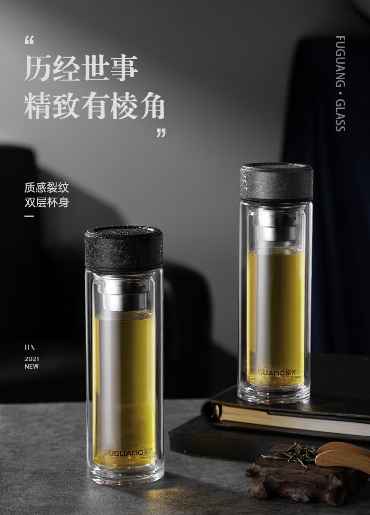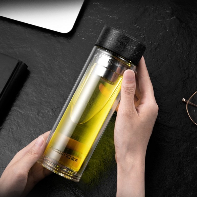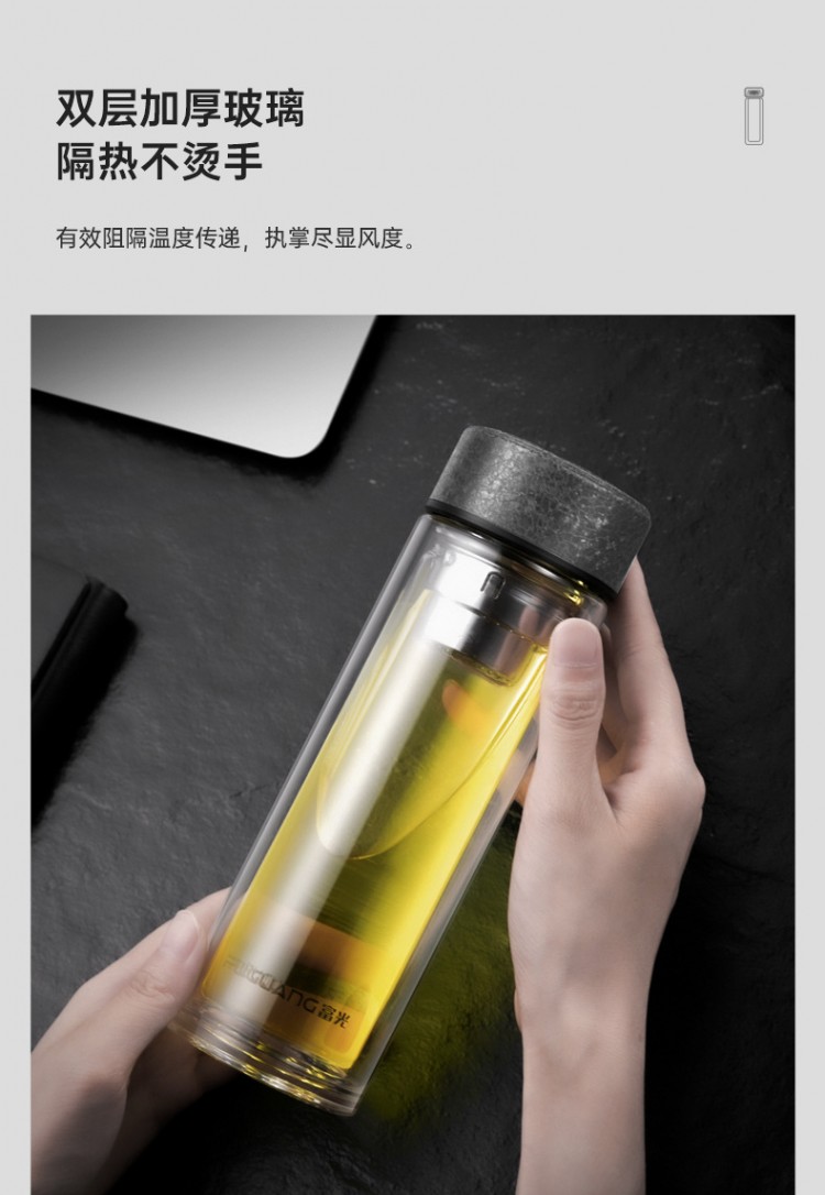 富光玻璃杯(黑色)G2139-SH-330華耀杯 雙層加厚玻璃杯印logo 高硼硅玻璃杯批發(fā)代理