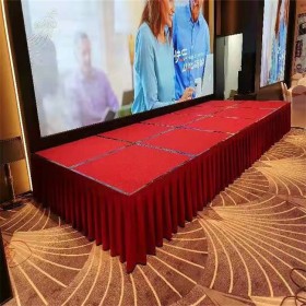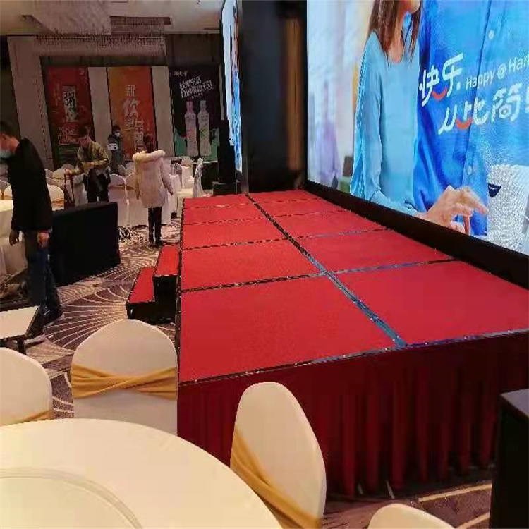 折疊舞臺的常規(guī)尺寸一般為: 1.22m*2.44m; 1.83m*2.44m. 其特點是比較輕便,法需要時可以折疊起來,大大減少存儲和運輸成本. 再者,這種舞臺還帶有輪子,一個姑娘就參輕易的推動安裝這樣的舞臺.這款舞臺深受廣大酒店的青睞,人們通常也稱之為: 酒店舞臺,酒店專用舞臺,酒店移動舞臺, 酒店折疊舞臺 3.簡易舞臺的尺寸通常是: 1m*1m; 1m*2m,這些舞臺一般只能四個舞臺腳支撐, 相對比較貴往往承重比較低. 拉網(wǎng)式舞臺的特點就是攜帶方便,適用于一般的小型會議室。