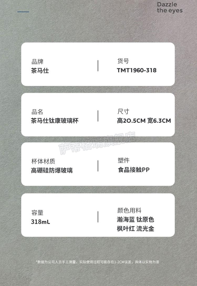 富光茶馬仕鈦康玻璃杯TMT1960-318 【玻璃鈦杯】318ML男女士商務(wù)辦公水杯團(tuán)購(gòu)定制刻字