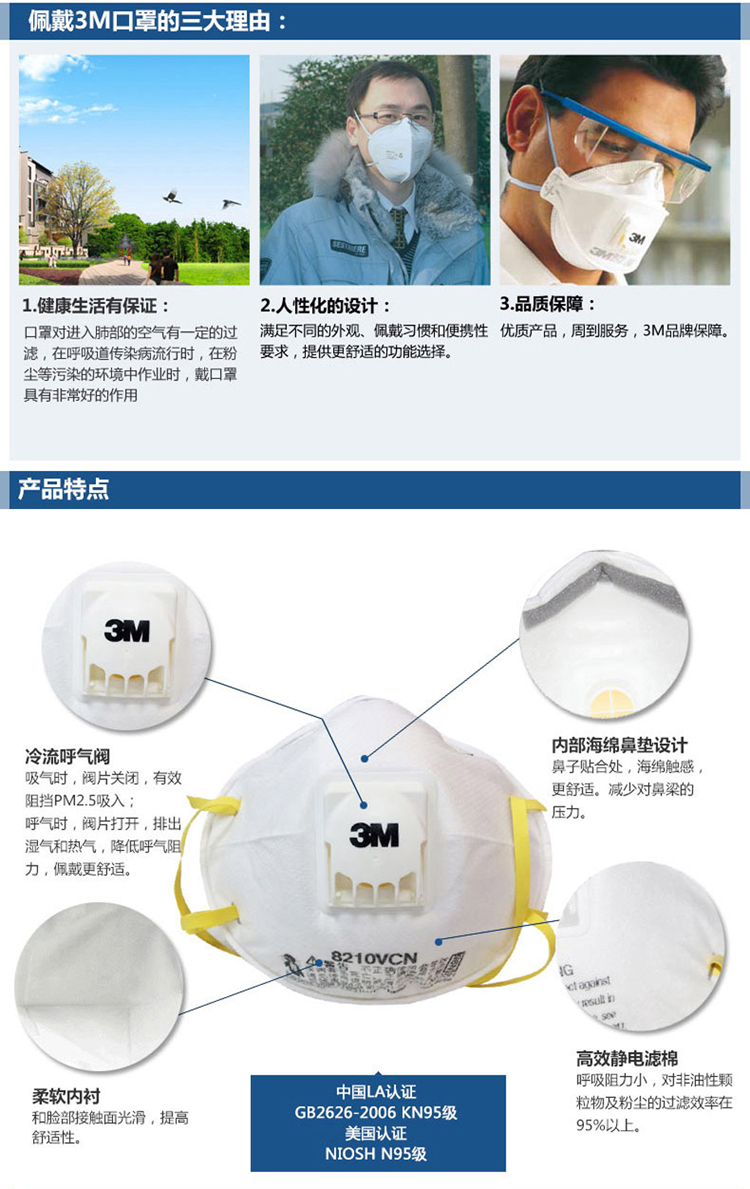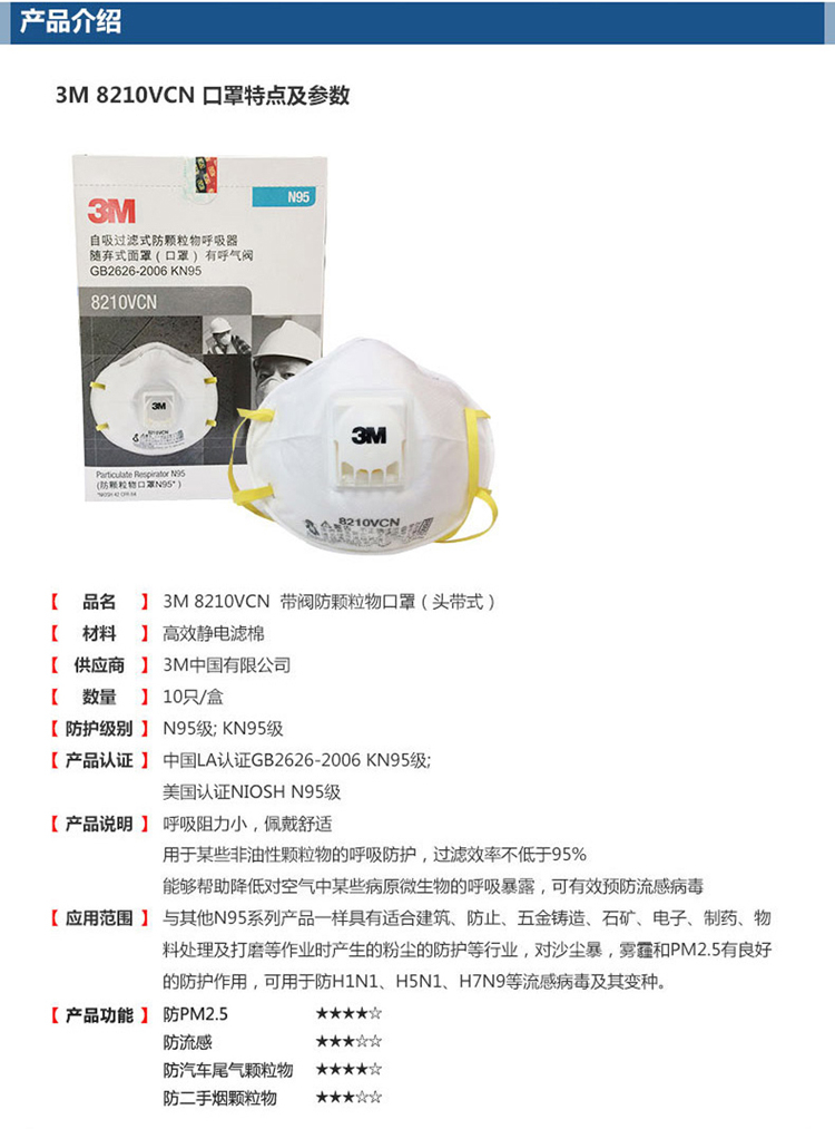 3M 8210VCN防塵口罩N95防顆粒物透氣呼吸閥工業(yè)勞保10只/盒