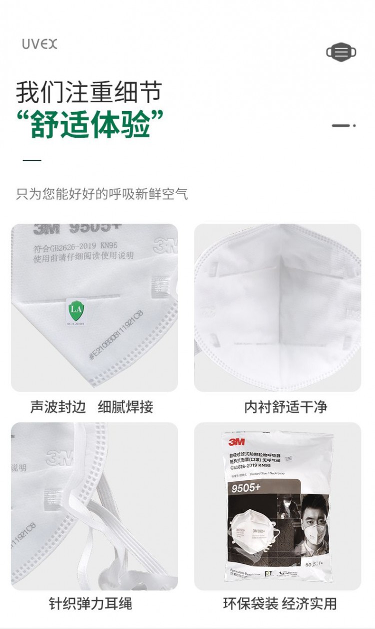 3M 9505+ 頸戴式自吸過濾式防顆粒呼吸器KN95 白色 50只/袋