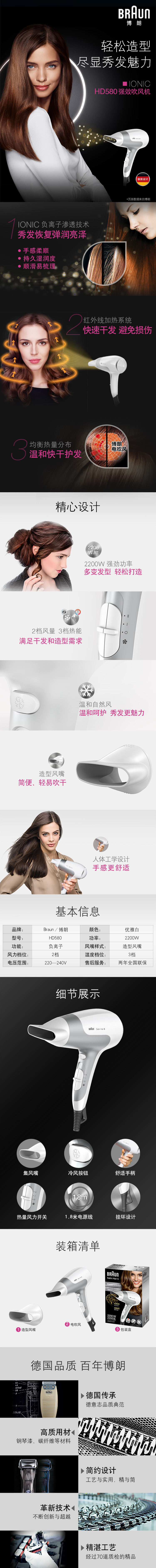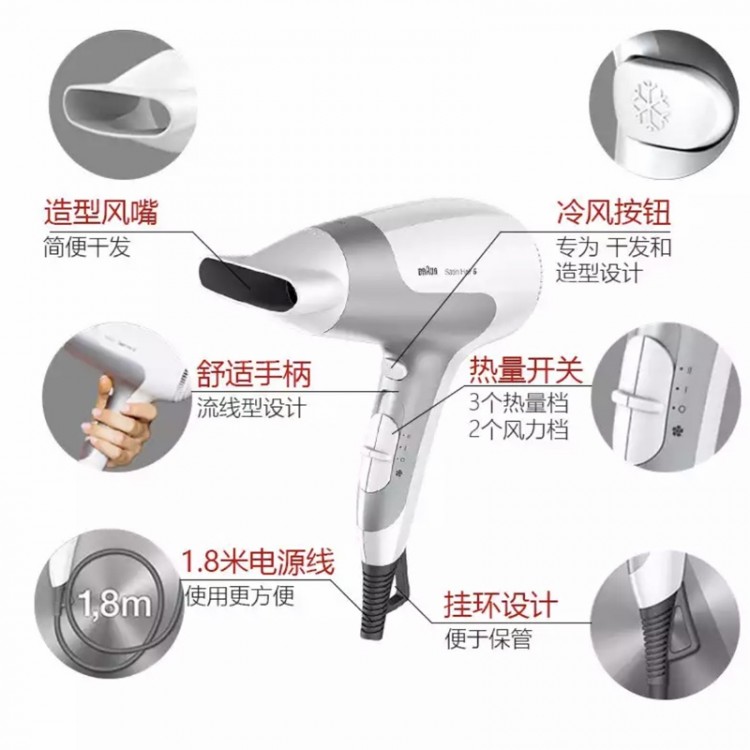 博朗 電吹風(fēng)機(jī) HD580-436 家用大功率電吹風(fēng)筒2000W 禮品定制