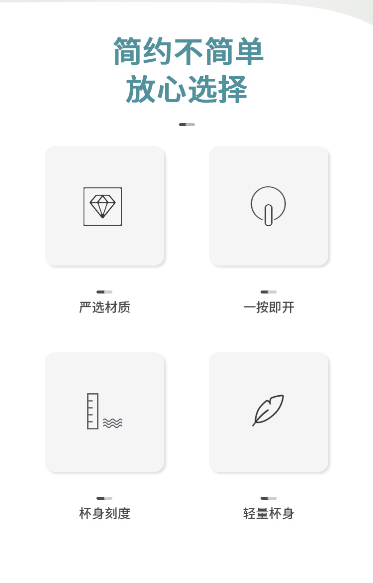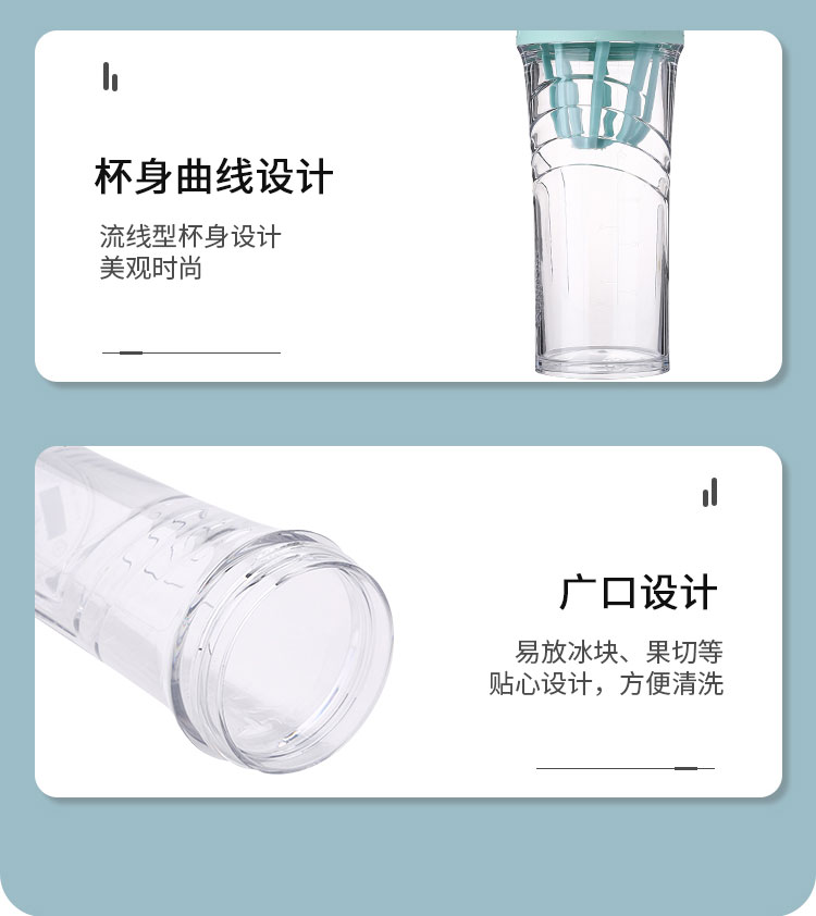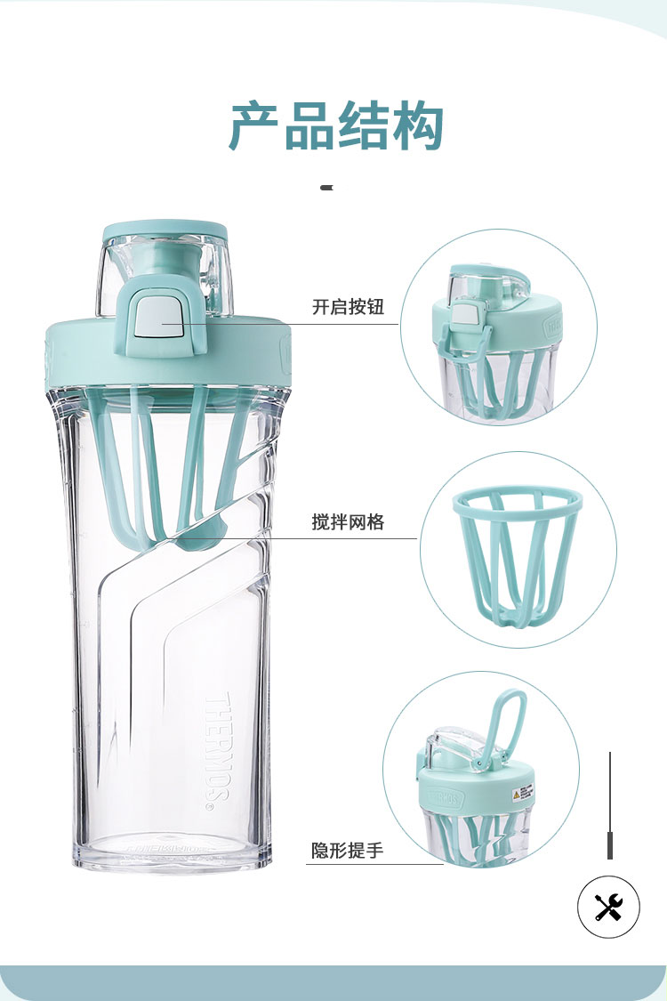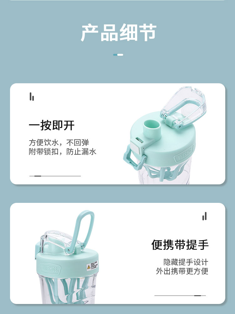 產(chǎn)品介紹:瓶身為進(jìn)口Tritan材質(zhì),歐美奶瓶專用材質(zhì)安全放心,安全鎖扣,一按即開(kāi),內(nèi)置網(wǎng)格攪拌,廣口設(shè)計(jì),輕松放入冰塊,密封性能佳膳魔師杯蓋與杯身結(jié)合部,使用了食品級(jí)硅膠圈密封。
