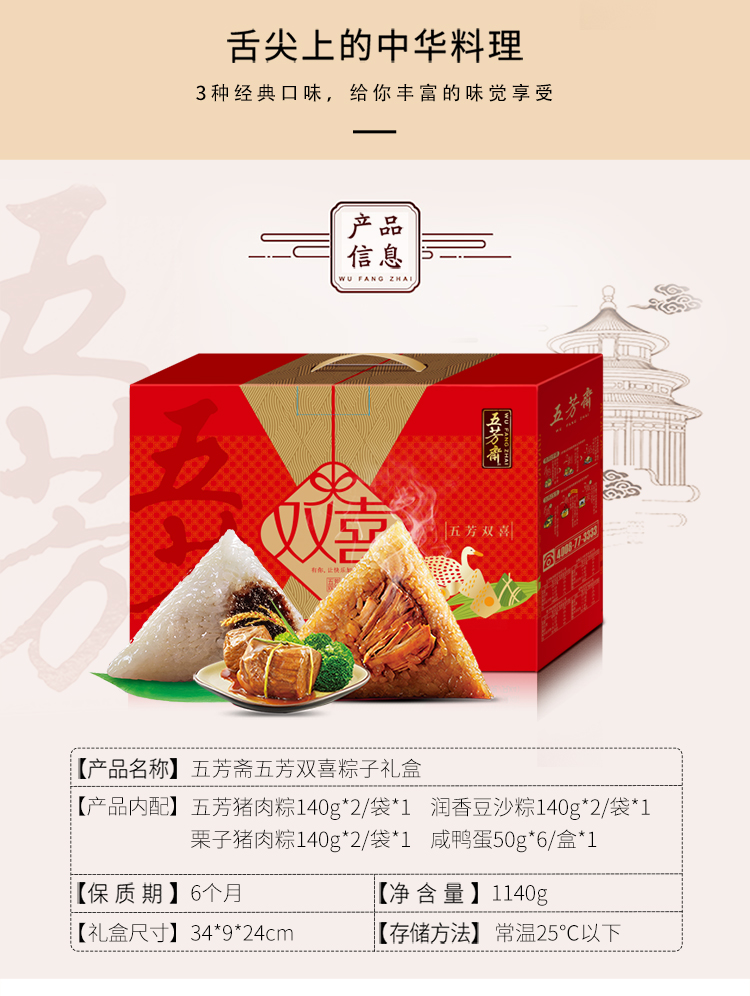五芳齋五芳雙喜粽子禮盒1140g嘉興粽子 批發(fā)團(tuán)購公司員工福利送禮