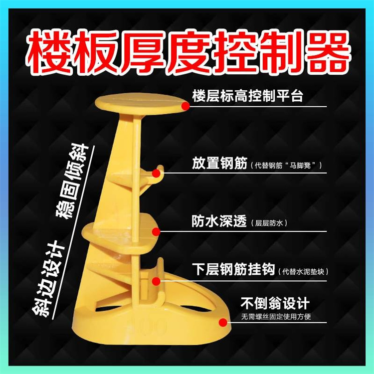 樓板厚度控制一直以來(lái)都是行業(yè)控制的要點(diǎn),過(guò)后則增加符合同時(shí)影響裝修面層,過(guò)薄則導(dǎo)致樓板承載不足。如何將樓板厚度的偏差控制在可控厚度以?xún)?nèi),一直是工程人追求的目標(biāo)。所以發(fā)明的樓板控制器。 樓板厚度控制是混凝土施工控制的要點(diǎn)之一,過(guò)厚會(huì)增加荷載同時(shí)影響裝修面層,過(guò)薄則導(dǎo)致樓板承載力不足.將樓板厚度的偏差控制在(-5,8)mm以?xún)?nèi)。