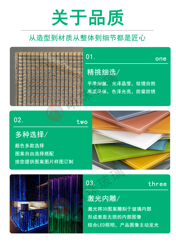 明珠玻璃隸屬于成都輝煌明珠玻璃有限公司,我們的宗旨是為社會(huì)提供綠色環(huán)保、節(jié)能低碳型產(chǎn)品和貼心的的服務(wù)。公司依靠自身強(qiáng)大的產(chǎn)品開發(fā)和生產(chǎn)能力,精益求精的生產(chǎn)工藝和貼心的服務(wù),使公司在業(yè)內(nèi)有著良好信譽(yù),產(chǎn)品質(zhì)量穩(wěn)定,產(chǎn)能不斷提高,市場(chǎng)占有率逐年擴(kuò)大。主要運(yùn)用場(chǎng)所:售樓部,酒店,KTV ,家裝等,承接各類工程,時(shí)刻以工程質(zhì)量優(yōu)先,客戶利益優(yōu)先的原則,以“品質(zhì)、成本、速度、創(chuàng)新”作為企業(yè)生存法則!我們堅(jiān)信只有共生,只有共贏,才能正真的贏!只有客戶價(jià)值才能使企業(yè)常青!只有創(chuàng)新,只有開放,才有未來!我們?cè)概c您攜手,相生協(xié)力,共贏未來!