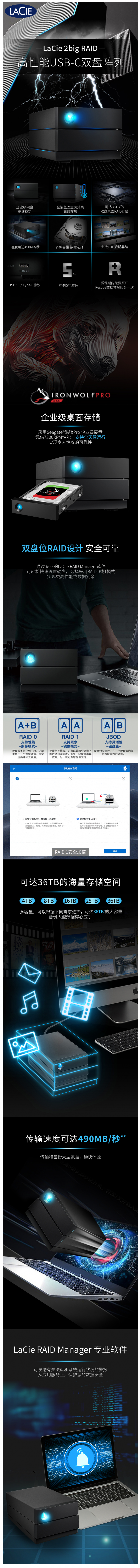 雷孜LaCie 四川成都總代理 28TB Type-C/USB3.1 Gen2 2盤位磁盤陣列 2big RAID 黑色典雅 金屬外殼