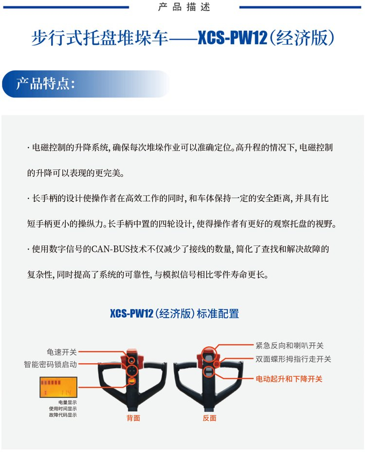 步行式托盤堆垛車XCS-PW12經(jīng)濟款 運轉(zhuǎn)靈活