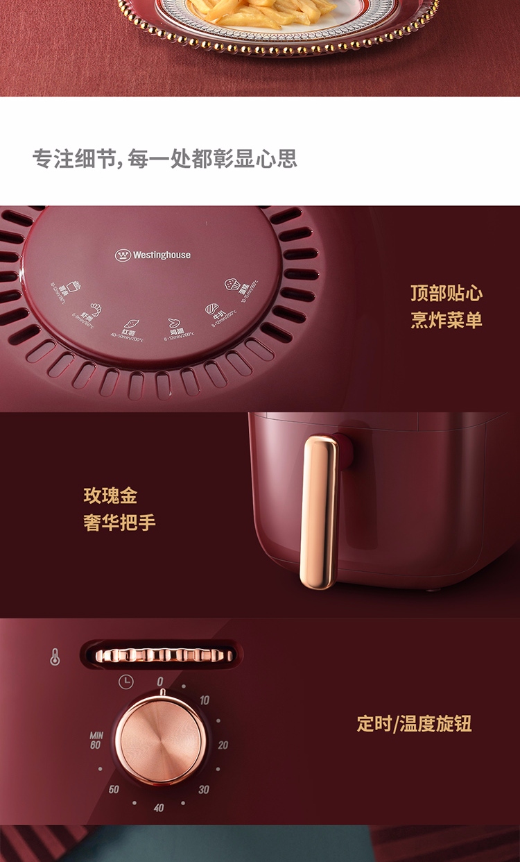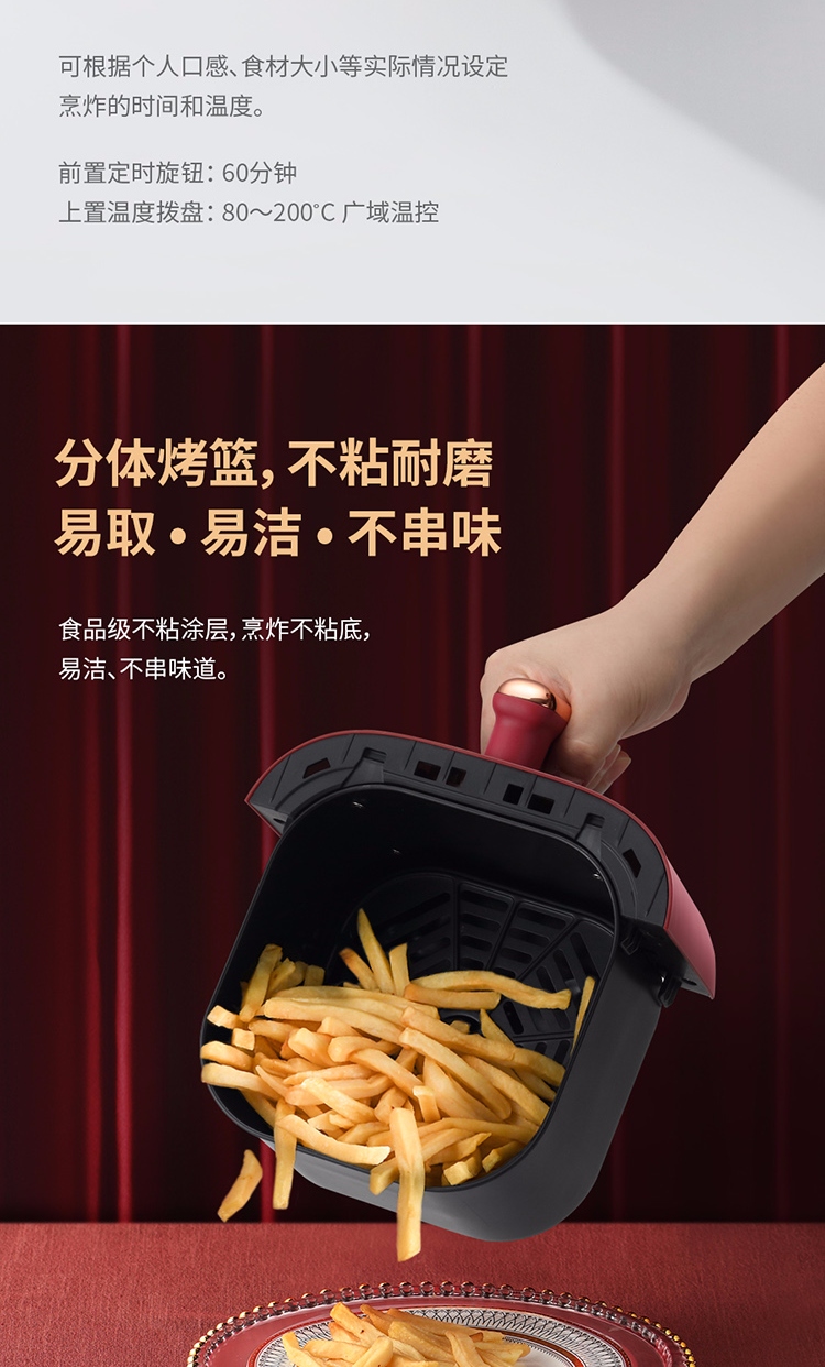 1、熱風(fēng)空氣炸,口感好,無油更健康;