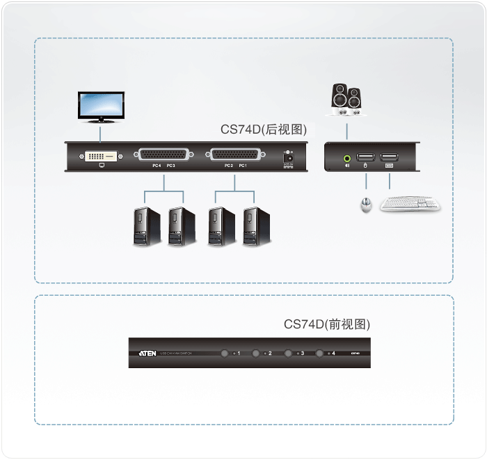 可通過(guò)前端面板按鍵、熱鍵及鼠標(biāo)切換電腦*