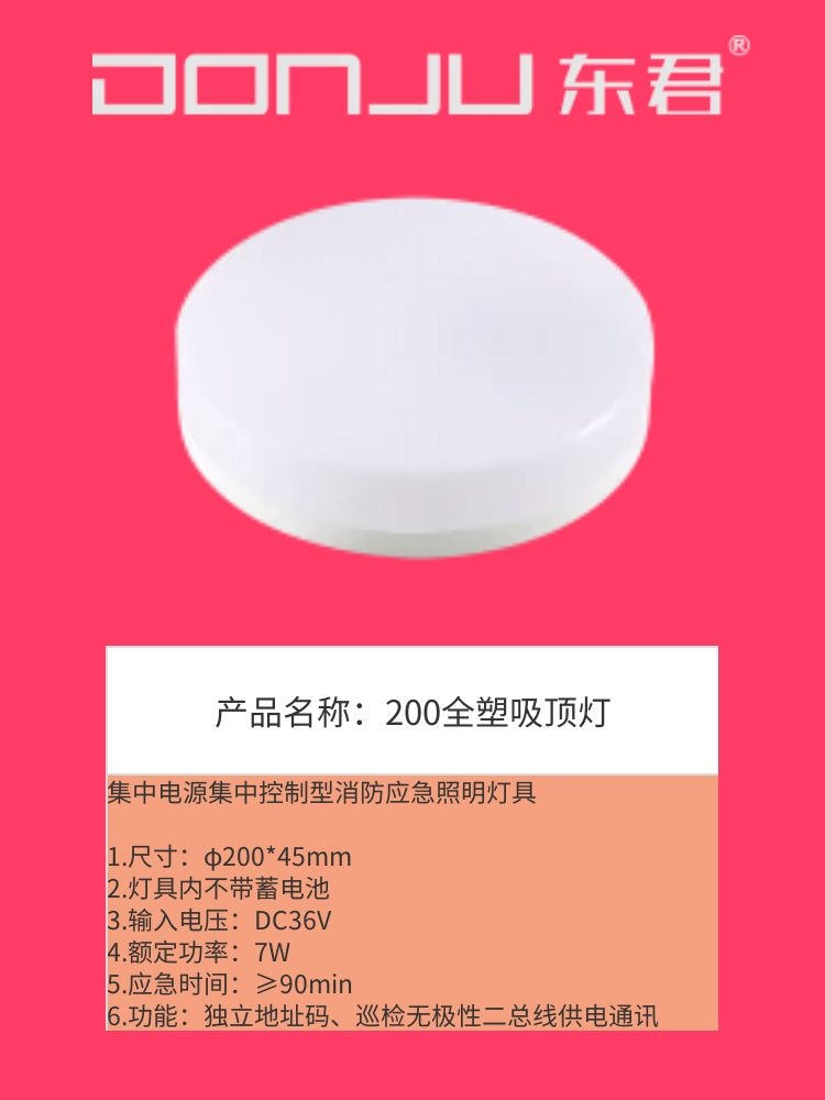 廣東東君照明200m全塑吸頂燈7W消防智能應(yīng)急照明燈集中電源集中控制消防聯(lián)動獨立地址編碼DJ-03C