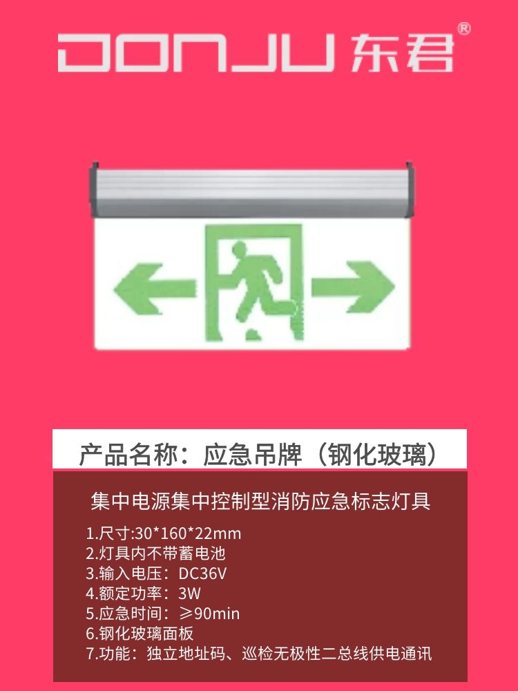 廣東東君照明水晶吊牌1W鋼化玻璃A型36V集中電源集中控制獨立地址嵌頂消防聯(lián)動巡檢DJ-01K