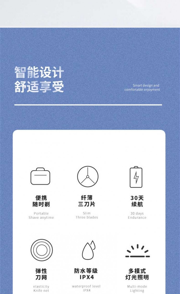 4.纖薄三葉式刀片剃須;