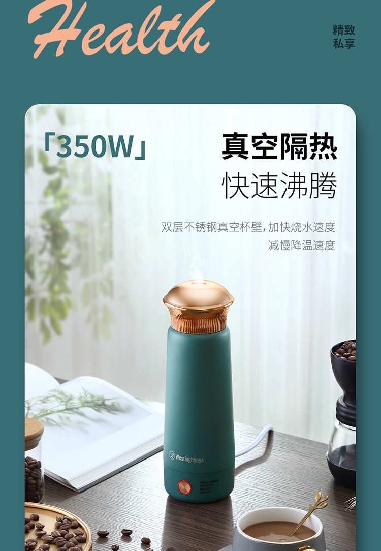 1、雙層不銹鋼真空杯壁,加快燒水速度,減慢降溫速度,8小時(shí)保溫;