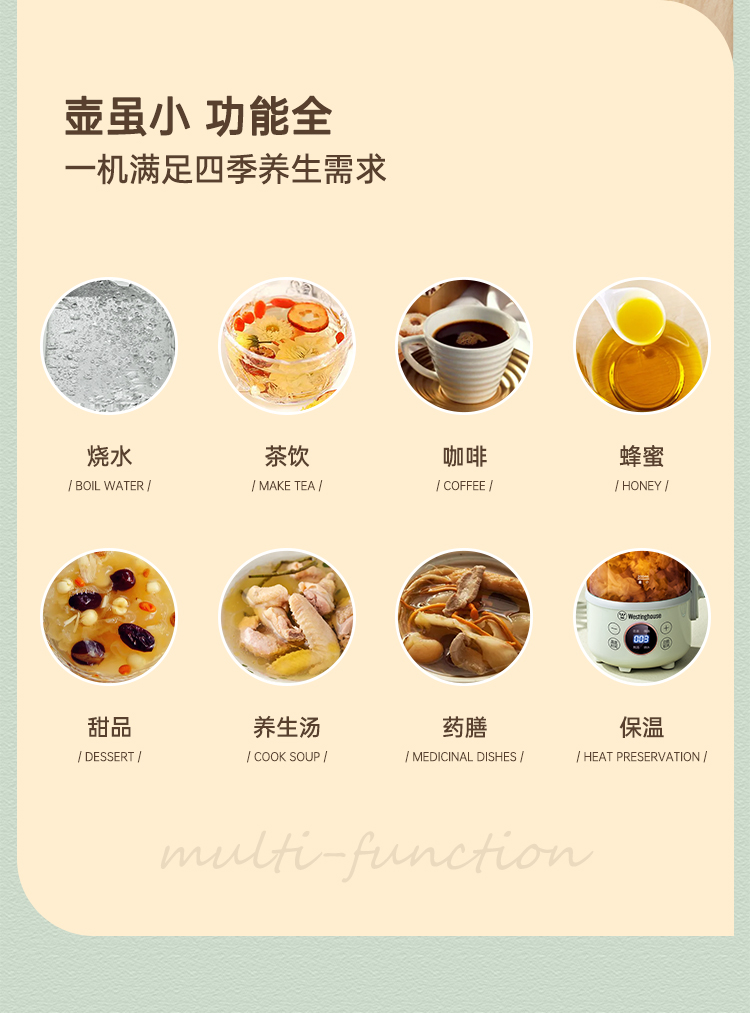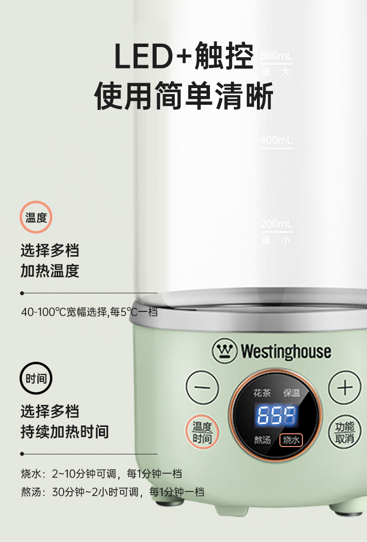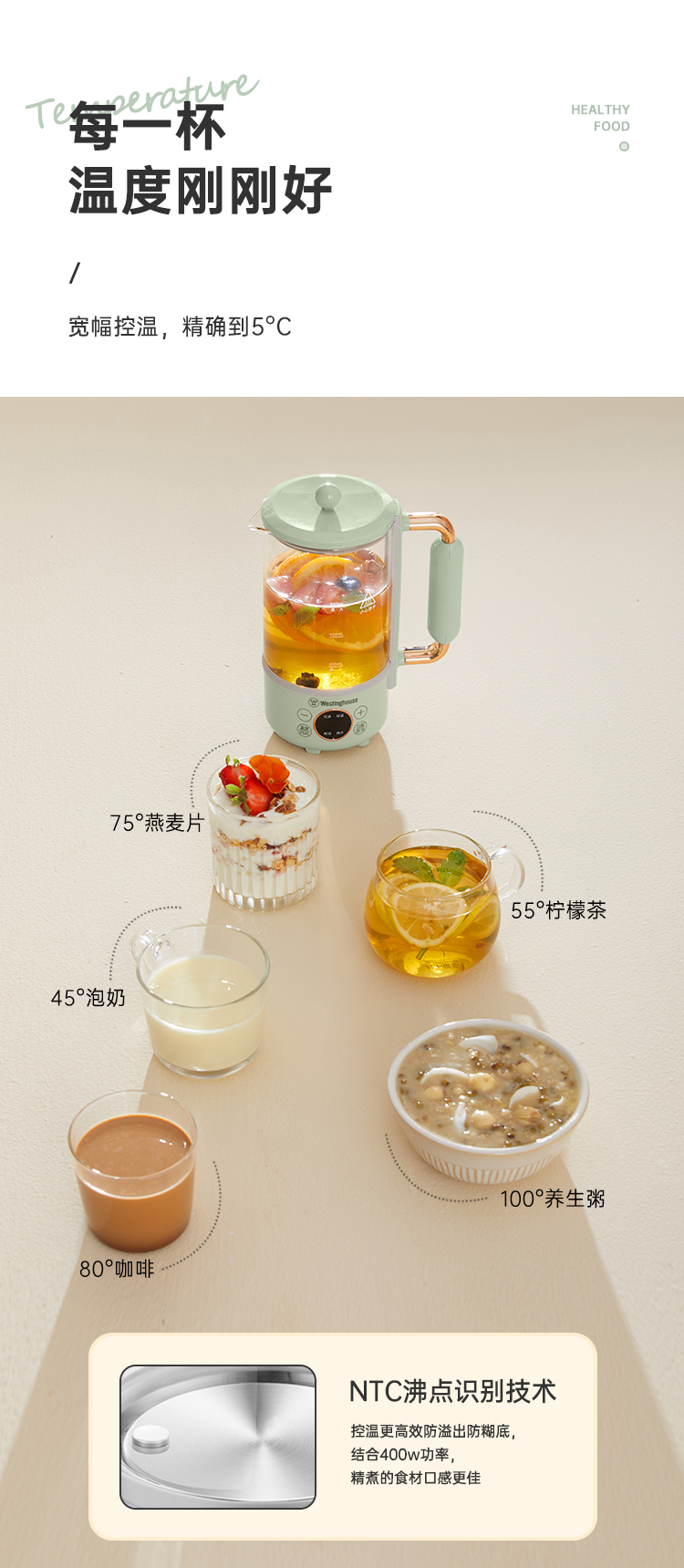 2、燒水時溫度可在40°C~100℃之間隨意調(diào)節(jié),找到匹配食材的溫度。;