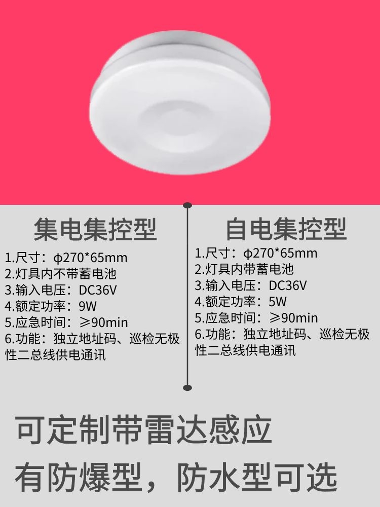 消防智能應(yīng)急照明疏散系統(tǒng)應(yīng)急吸頂燈雷達(dá)感應(yīng)吸頂燈集中控制型獨(dú)立地址A型DC36V