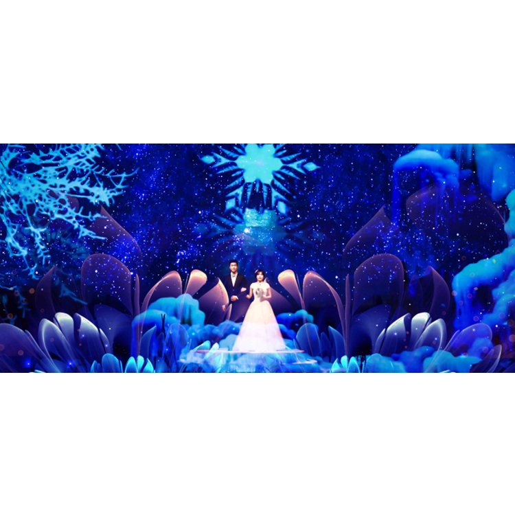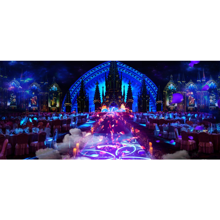 紗幕投影、互動T臺投影、3D婚紗投影、全息舞美等技術(shù)運用于傳統(tǒng)宴會廳,