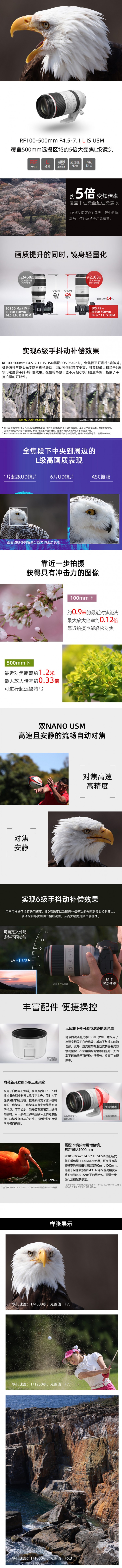 RF100-500mm F4.5-7.1 L IS USM 覆蓋500mm遠(yuǎn)攝區(qū)域的5倍大變焦L級(jí)鏡頭商城正式發(fā)售!